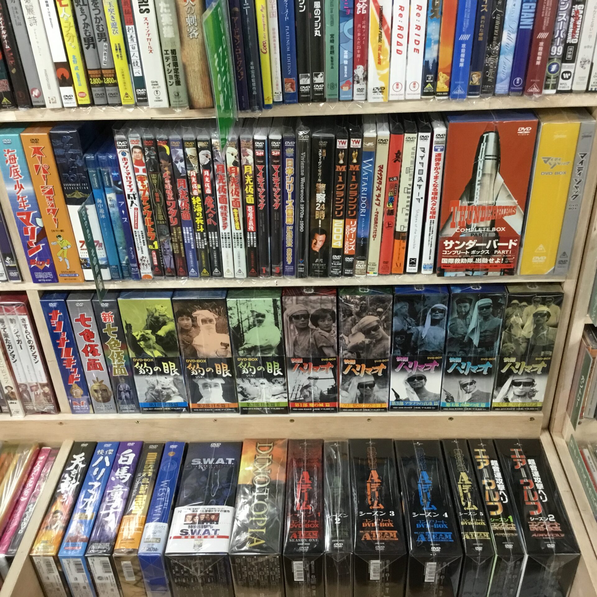 DVDコーナーには50~60年代の特撮番組がずらりと並んだ状態。