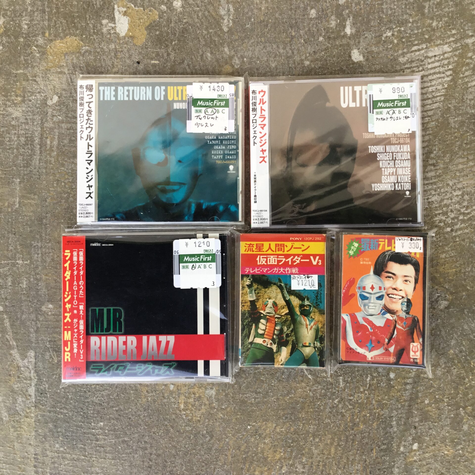 ちなみに、ウルトラマンや仮面ライダーといった特撮関連のCDやカセットも少量ですが最近入っております。