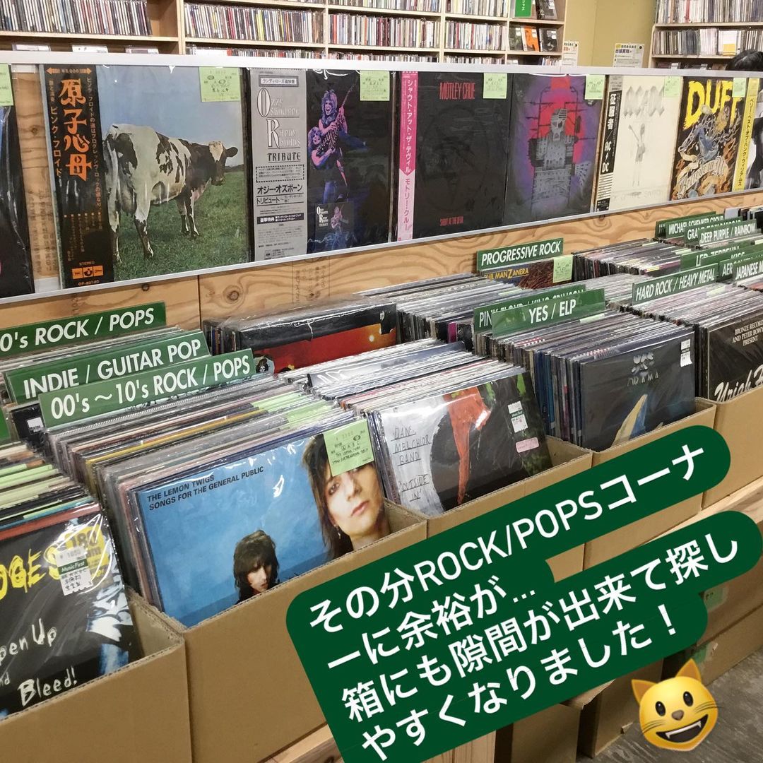 「お客様がレコード探すときに箱に少し隙間が無いと大変、ROCK/POPSコーナー増やさなきゃですね!」