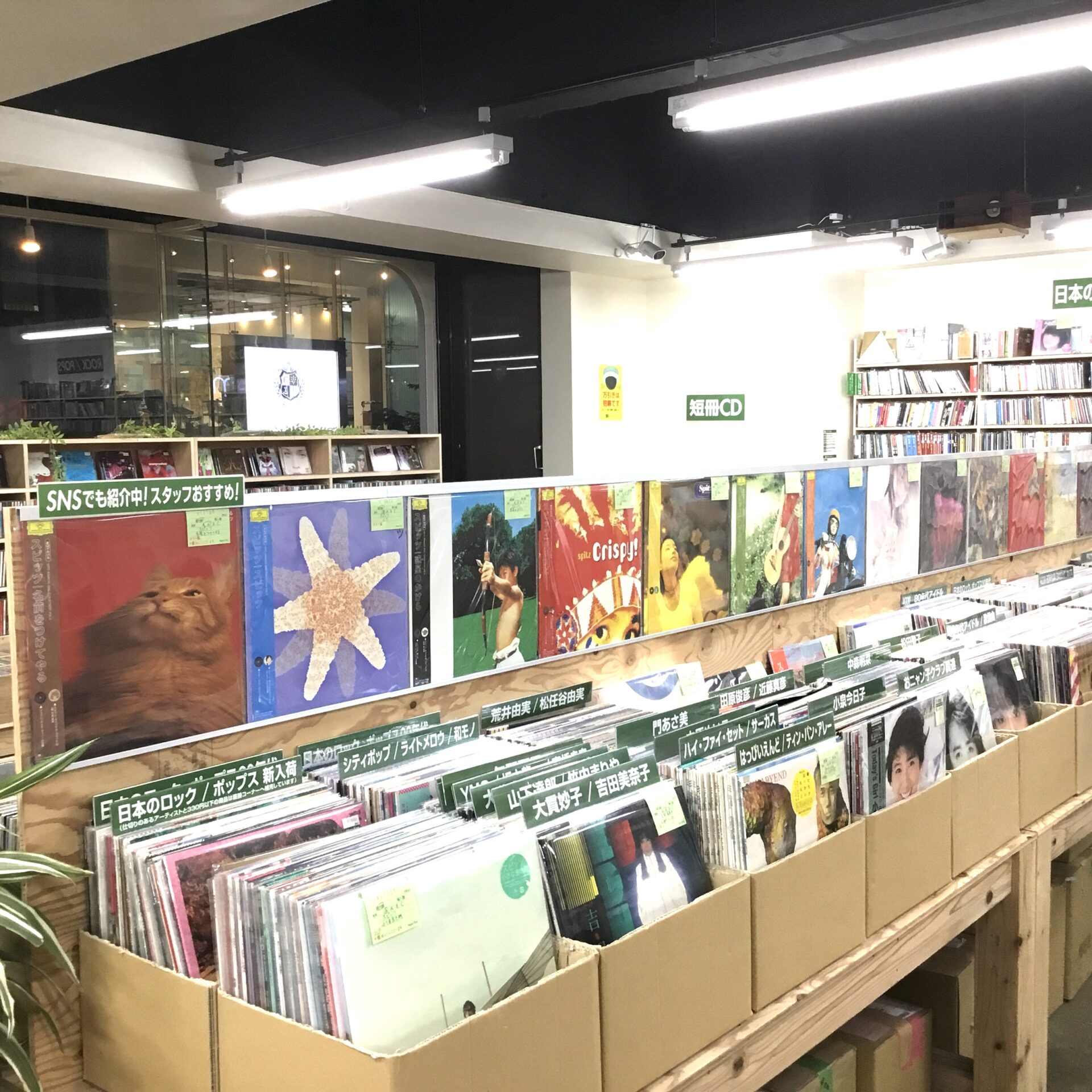 一部をのぞいて邦楽コーナーの壁一面に飾りましたので、ぜひ心ときめかせながらお手に取ってくださいませ。