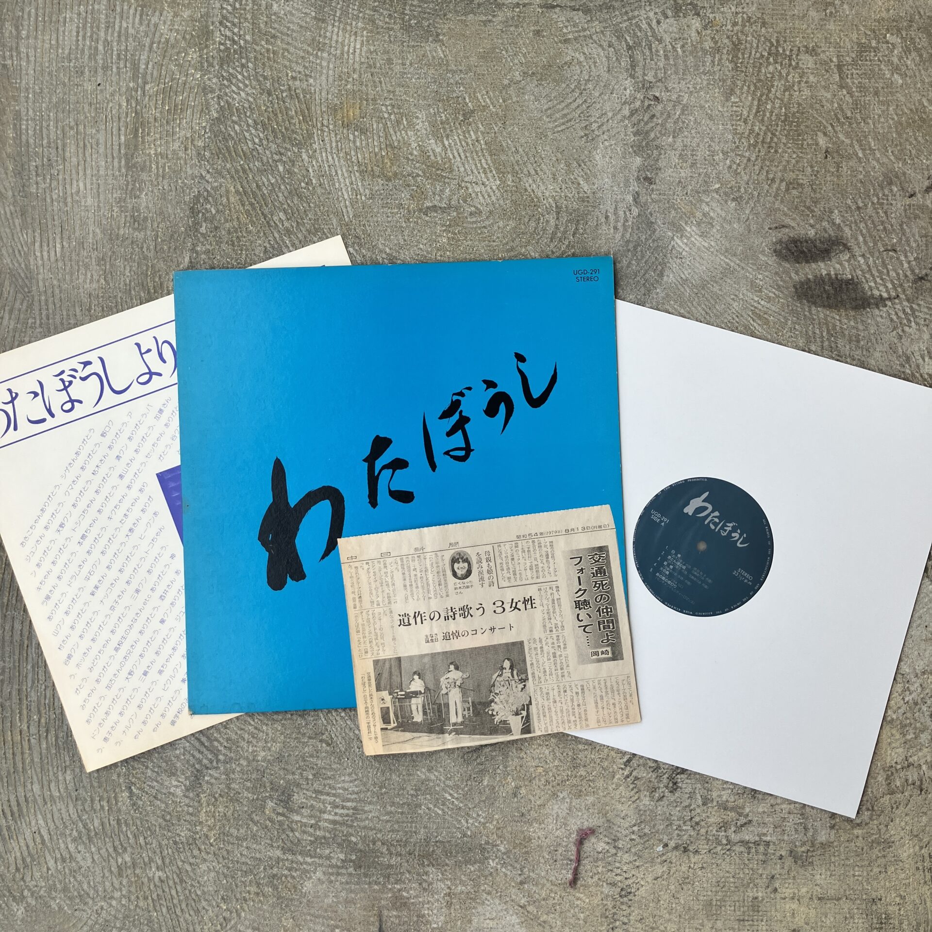 買取らせていただいた品には1979年8月13日の中日新聞、悲しい事故により亡くなられてしまったキーボードの鈴木乃里子さんの追悼コンサートの様子を伝える記事が添付されておりました。