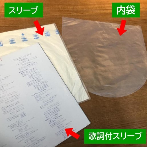 国内盤に関してはスリーブ自体に歌詞が印刷されている「歌詞付スリーブ」というタイプもあります。