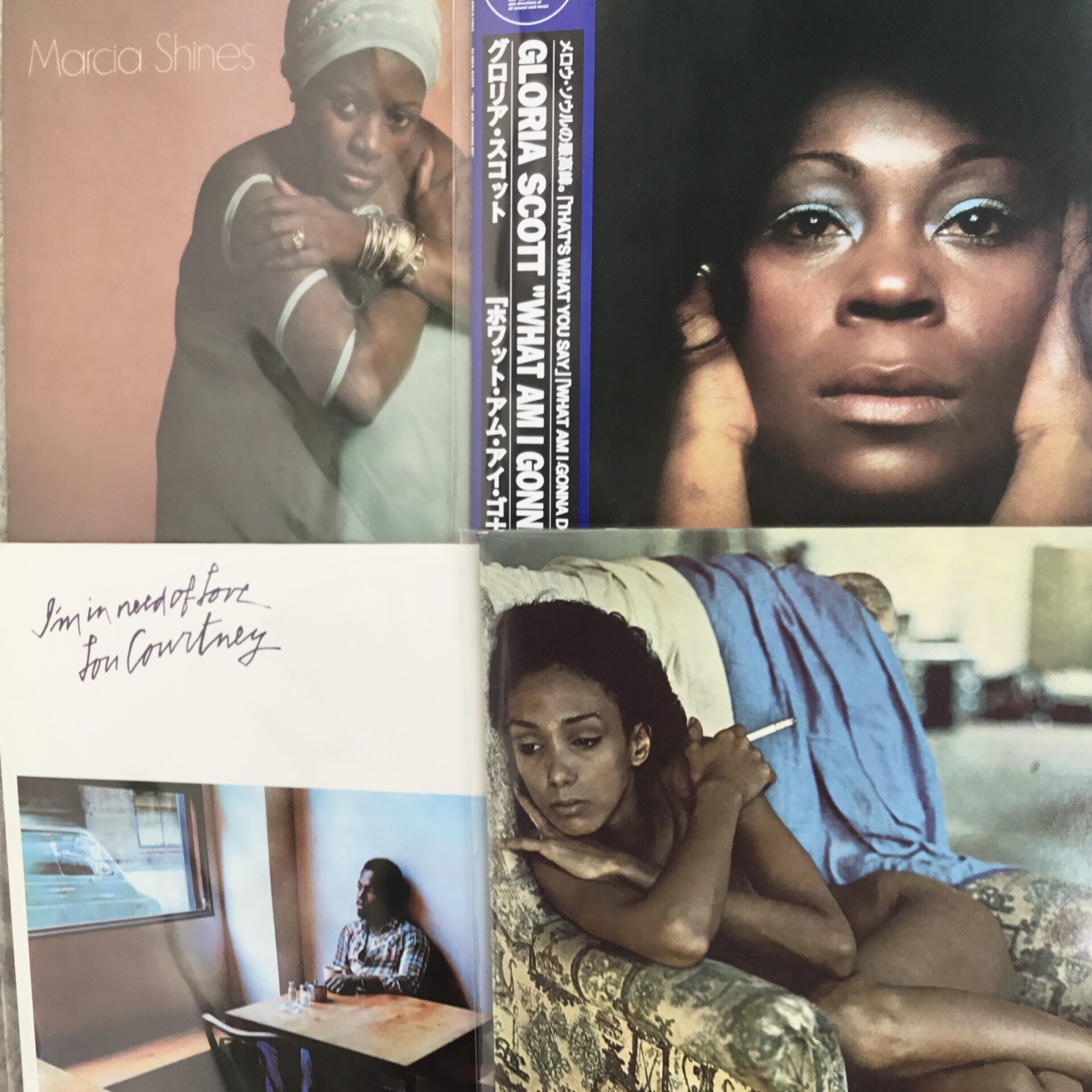 見ての通りジャケの美しさも素晴らしい「Gloria Scott / What Am I Gonna Do」「Terry Callier / What Color Is Love」「Lou Courtney / I’m In Need Of Love」「Marcia Hines / Marcia Shines」など、大きいレコード・サイズで愛でたい洒落ジャケ人気作も多数!