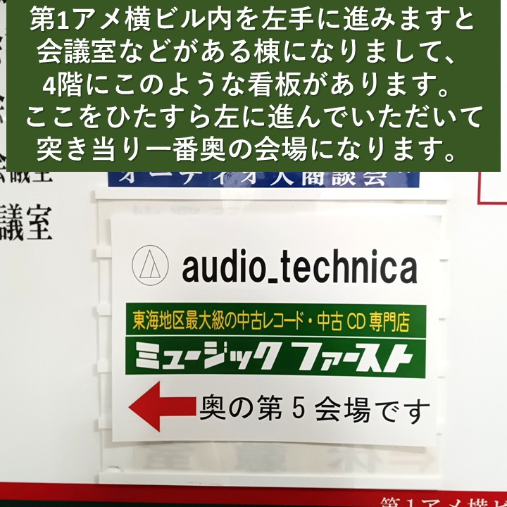 3.通路左に進んでいただき一番奥のaudio-technica様と同じ「第5会場」になります。