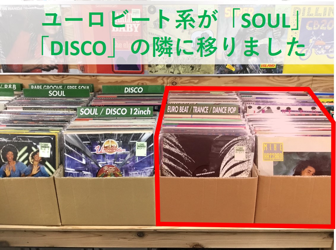 まず、ユーロビート系が反対側に移りました。ソウル/ディスコの右側、ワールドミュージックの左側にあります。