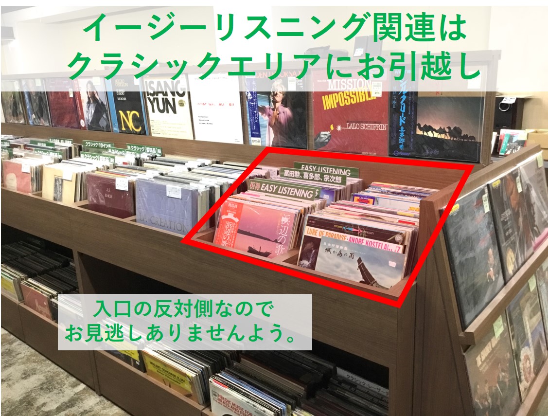 次にイージーリスニング関連。こちらはクラシックエリアにお引越ししました。エリア入口から見て反対側なので見逃しやすいのでお気をつけくださいね。