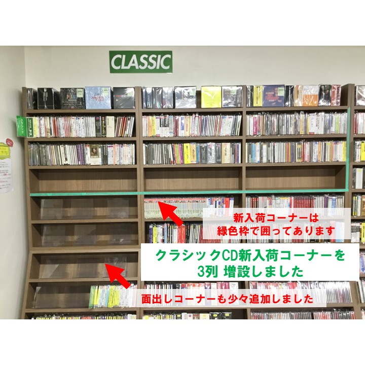 【お知らせ】クラシックCDの新入荷コーナーを思い切って3列増設しました。