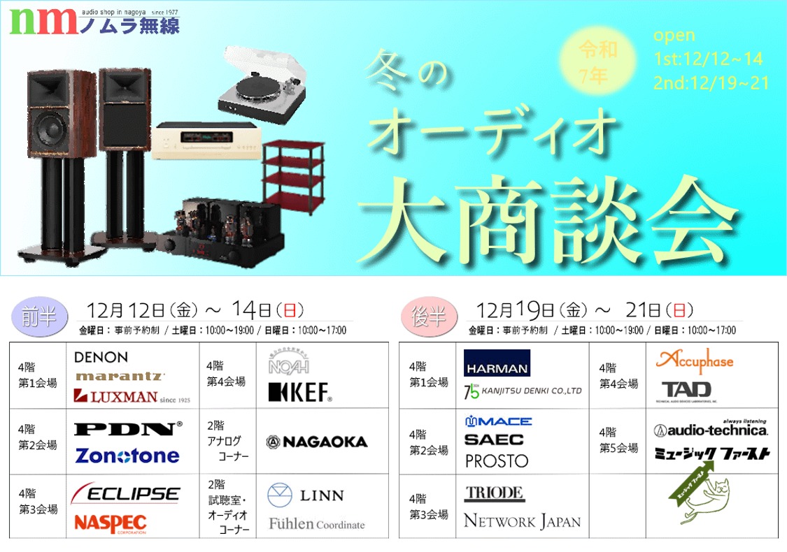 今週末の土日、12/20~12/21にノムラ無線様が主催する「冬のオーディオ大商談会」へ出展させていただきます!