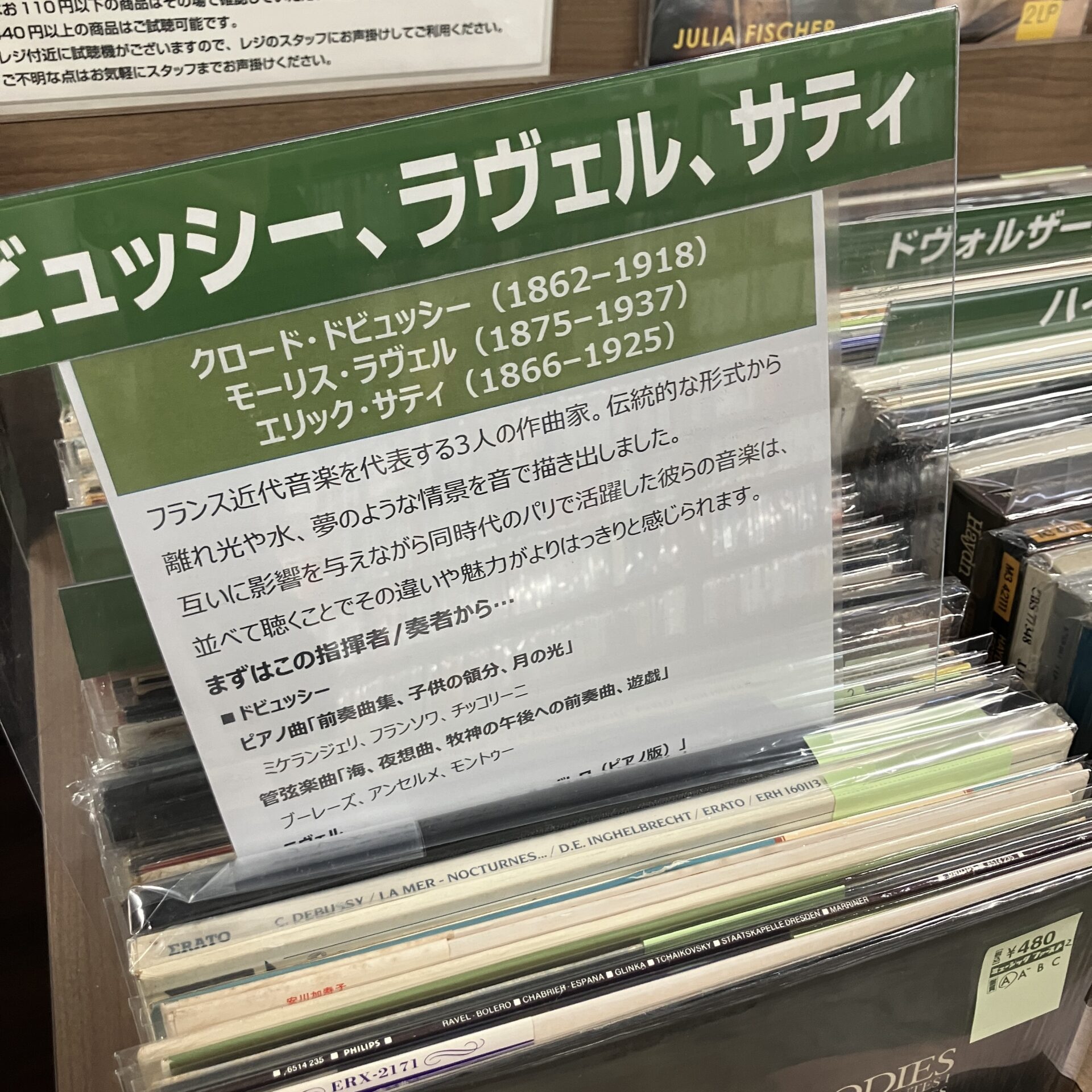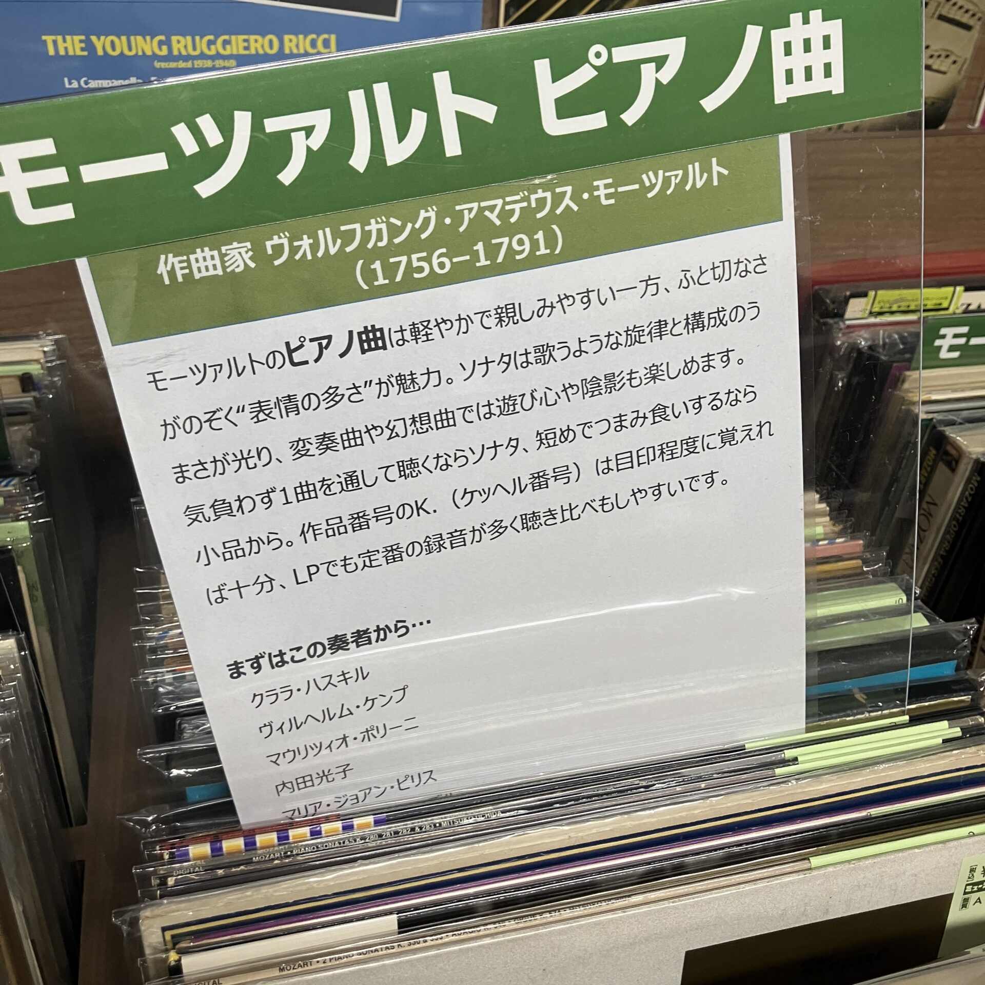 仕切りを持ち上げると出てくる解説文。 クラシックにちょっと興味あるけど何から聴けばいいかわからない…って方のための簡単ガイドを載せてみました!