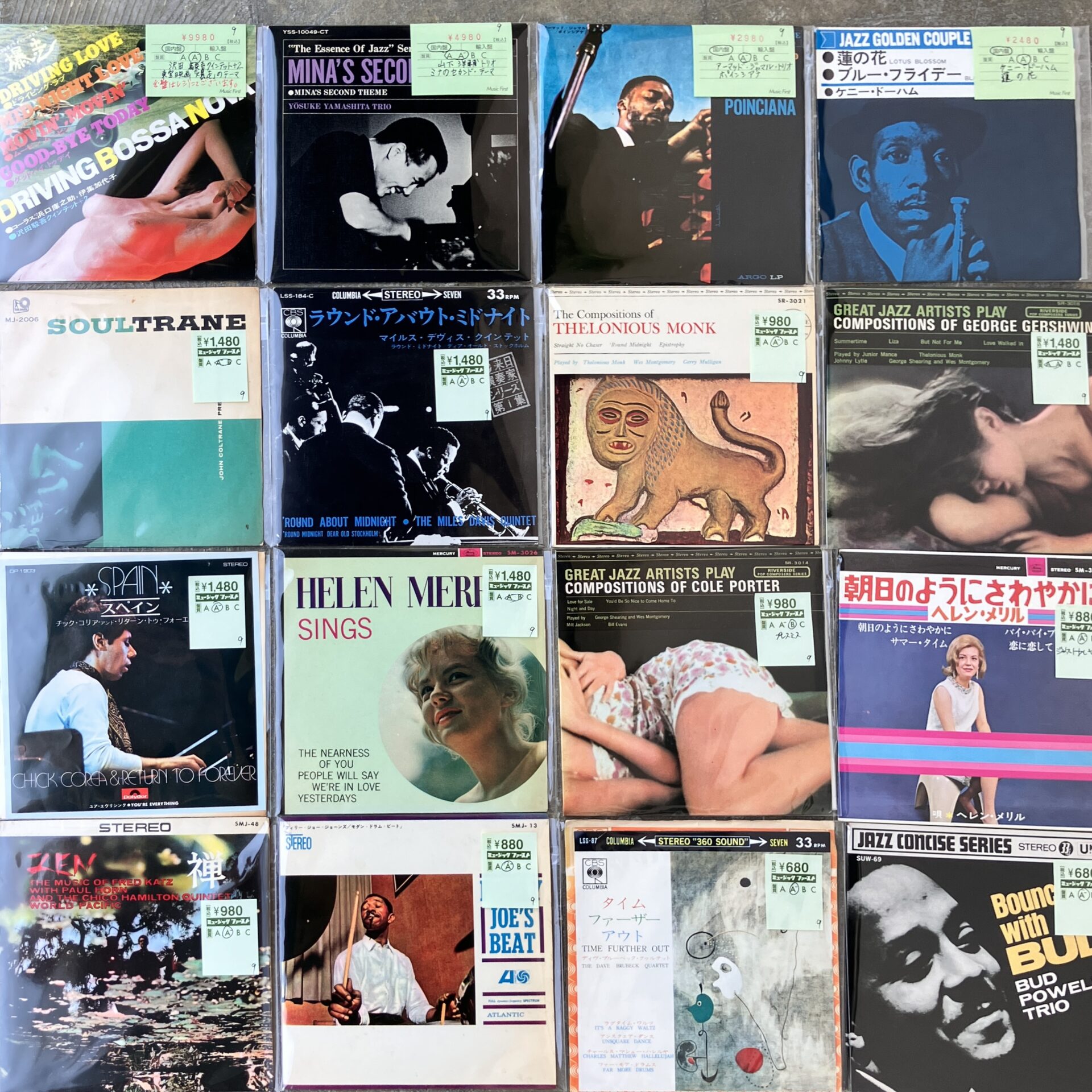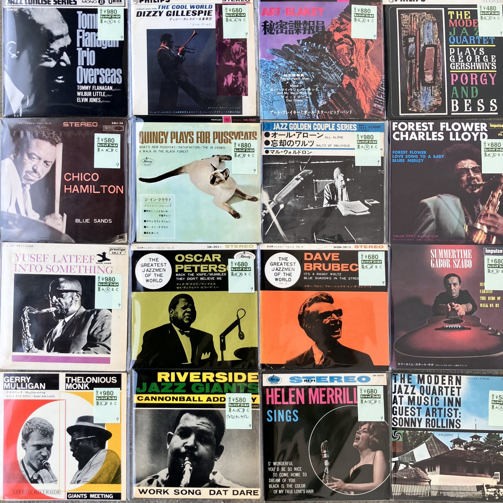 和ジャズ名曲/名ボッサ、沢田駿吾クインテット 「東宝映画「爆走」のテーマ」、アーマッド・ジャマルが有名にしたとも言えるスタンダード「ポインシアナ」、アバンギャルドフリー・ジャズ、山下洋輔トリオ「ミナのセカンド・テーマ」などなど約50点。