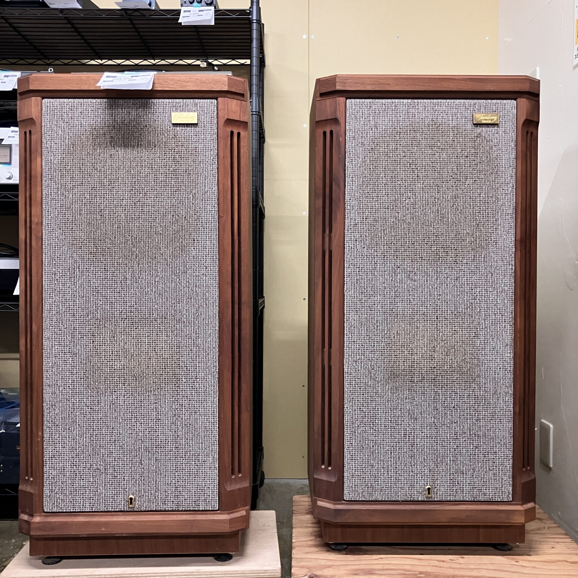 タンノイのスピーカーはエンクロージャーのウォルナットがとてもシックで見た目だけでも惚れ惚れです。