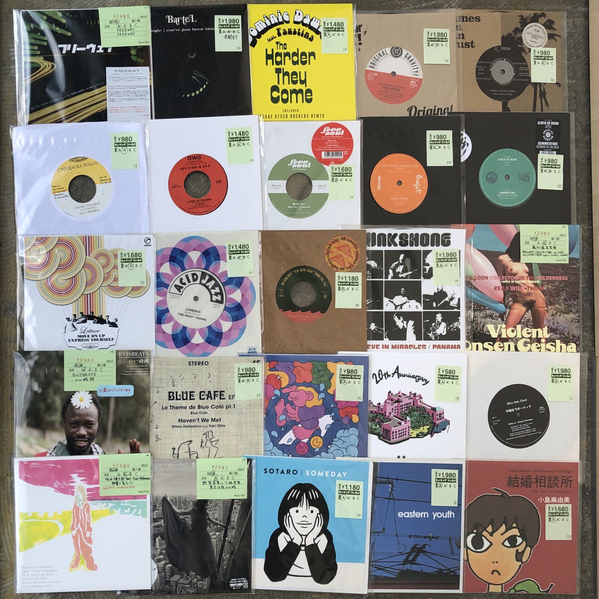 坂本慎太郎にイースタン・ユース、小島麻由美や暴力温泉芸者といった比較的最近の邦楽7inchはめぐり合う機会も少ないので嬉しいし、ハウス・オブ・ペイン「JUMP AROUND」ロックステディカバーやジャズ・ファンクバンド、レタスのカーティス・メイフィールドカバーも良いですね。